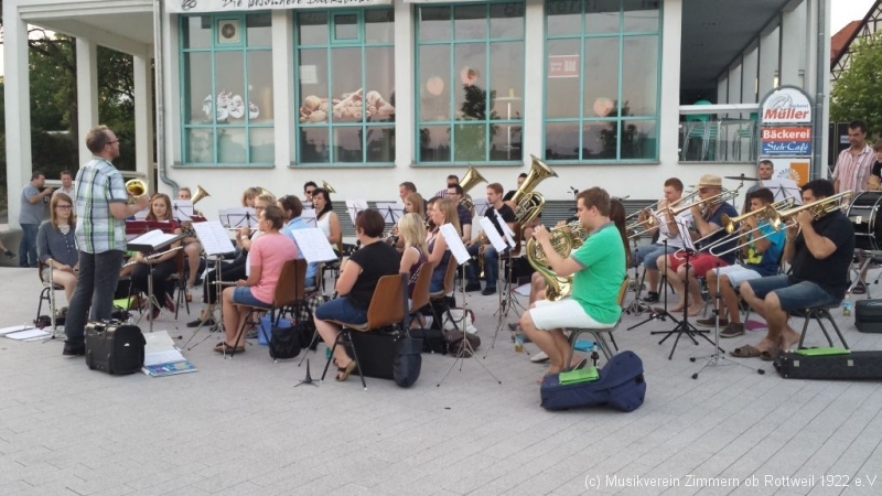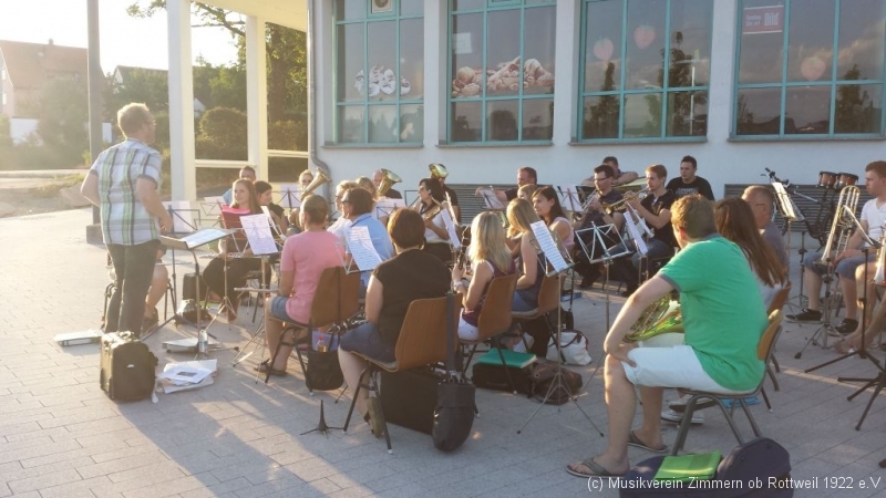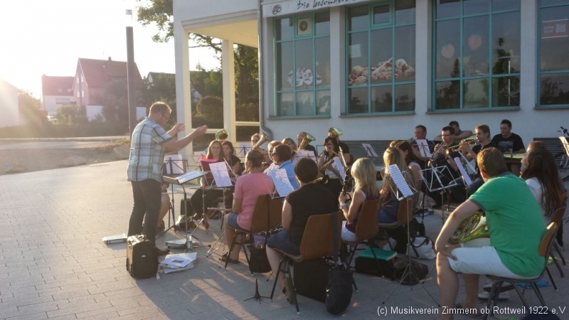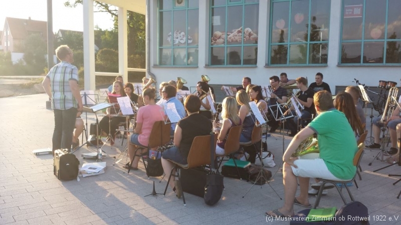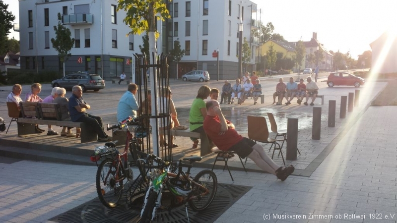 Nach einer guten halben Stunde wechselte der MVZ vom Probe- in den Auftrittsmodus und unterhielt die Gäste im Sonnenuntergang mit unterschiedlichsten Kostproben des breiten Repertoires.